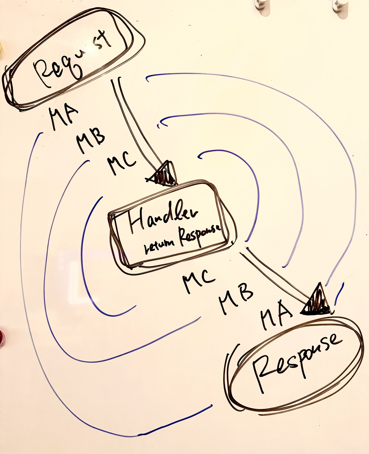 我们将返回 Response 的基本单元称为 "Handler"。 "Middleware" 在 Handler 之前和之后执行,并处理 Request 和 Response。 它就像洋葱结构一样。